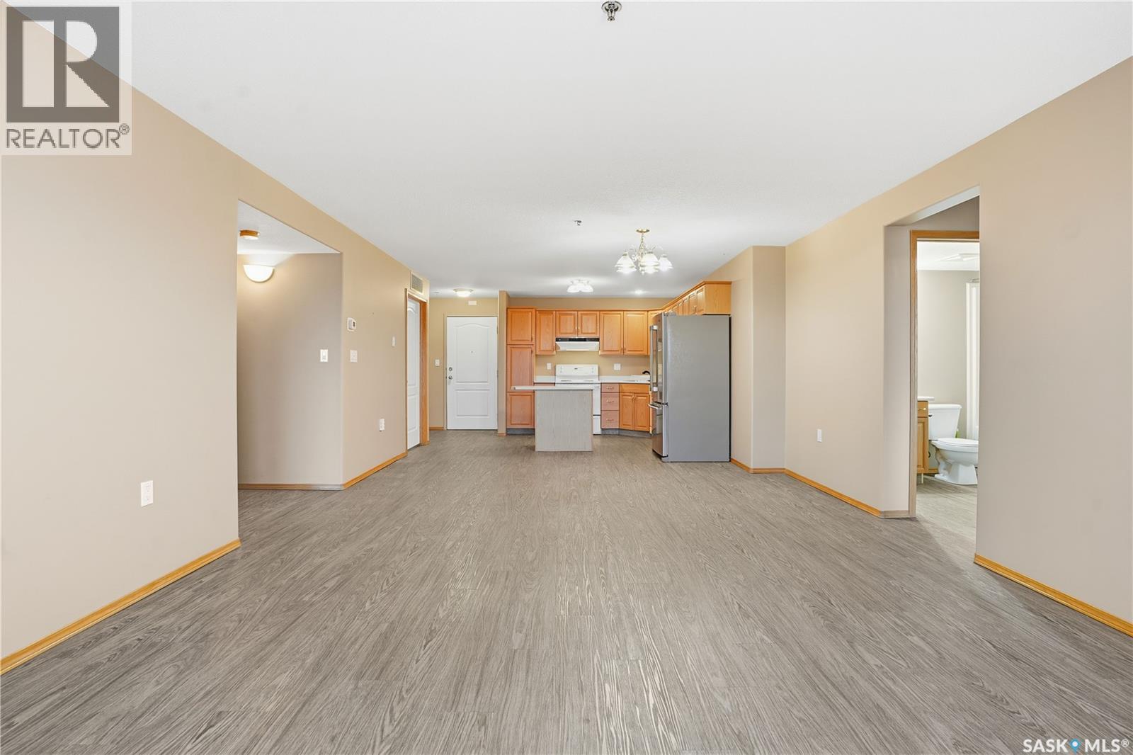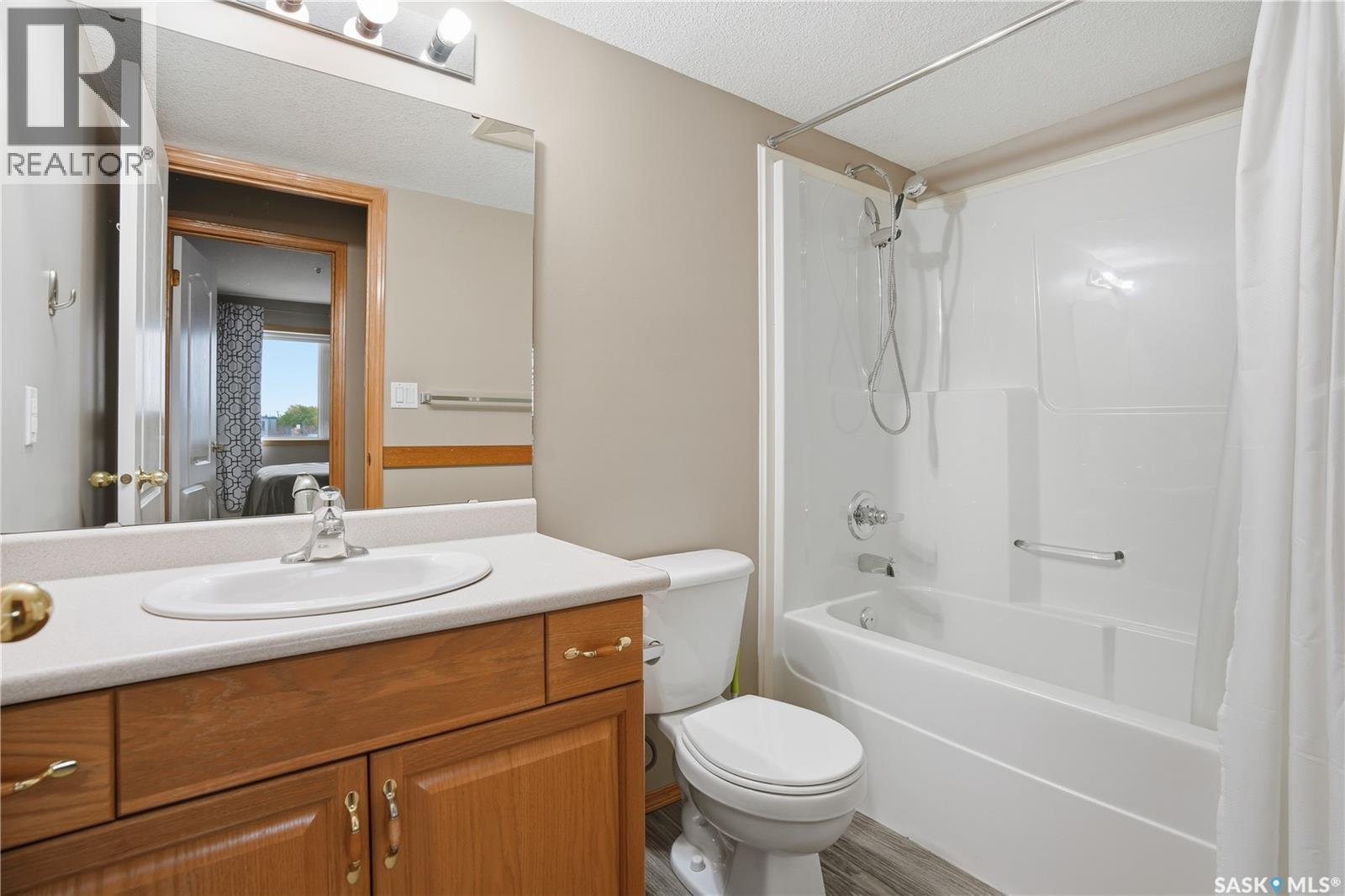 Welcome to this spacious and beautifully maintained 2-bedroom, 2-bathroom condo, ideally situated just steps from amenities and public transit. Step inside to a bright, open-concept living, dining, and kitchen area that’s perfect for both relaxing and entertaining. The functional kitchen offers plenty of counter and cabinet space, making meal prep a breeze. Enjoy the comfort of upgraded vinyl plank flooring that flows throughout the main living areas, adding a modern and stylish touch. The primary bedroom features plenty of closet space and an ensuite complete with a sleek new walk-in shower. A second bedroom and full bathroom provide excellent space for guests or a home office. Additional highlights include in-suite laundry, central air conditioning, and a large private balcony—perfect for morning coffee or evening sunsets. You’ll also appreciate the convenience of heated underground parking, especially during Saskatchewan winters. Condo fees include heat and water, offering excellent value and peace of mind. Located within a block of shopping, restaurants, and a bus stop, this home combines comfort, convenience, and low-maintenance living. (id:51699)