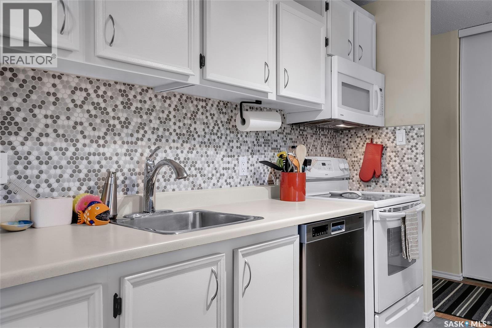 Welcome to this beautifully maintained and upgraded 2-bedroom, 1-bathroom condo located in the desirable community of Wildwood. Offering 870 sq. ft. of bright and functional living space, this top-floor unit is ideal for first-time buyers, young families, students, or savvy investors. Step into a spacious semi open-concept living and dining area filled with natural light from large, recently upgraded windows. The modern updates include gorgeous white kitchen with tiled back splash, laminate flooring, Brand new balcony and bright fresh finishes throughout, creating a clean and welcoming atmosphere that’s move-in ready. Exterior of building is currently being updated. Enjoy the benefits of a professionally managed building with secure access, one exclusive parking stall (with additional stalls available for rent), and ample visitor parking. Pet-friendly (with restrictions and approval), this condo offers lifestyle flexibility for both owners and renters. Located just minutes from essential amenities—including grocery stores, restaurants, parks, schools, and public transit—you’ll also appreciate easy access to the University of Saskatchewan, golf courses, and downtown Saskatoon. Don’t miss your chance to own an affordable, updated home in one of Saskatoon’s most convenient and connected neighbourhoods. (id:51699)