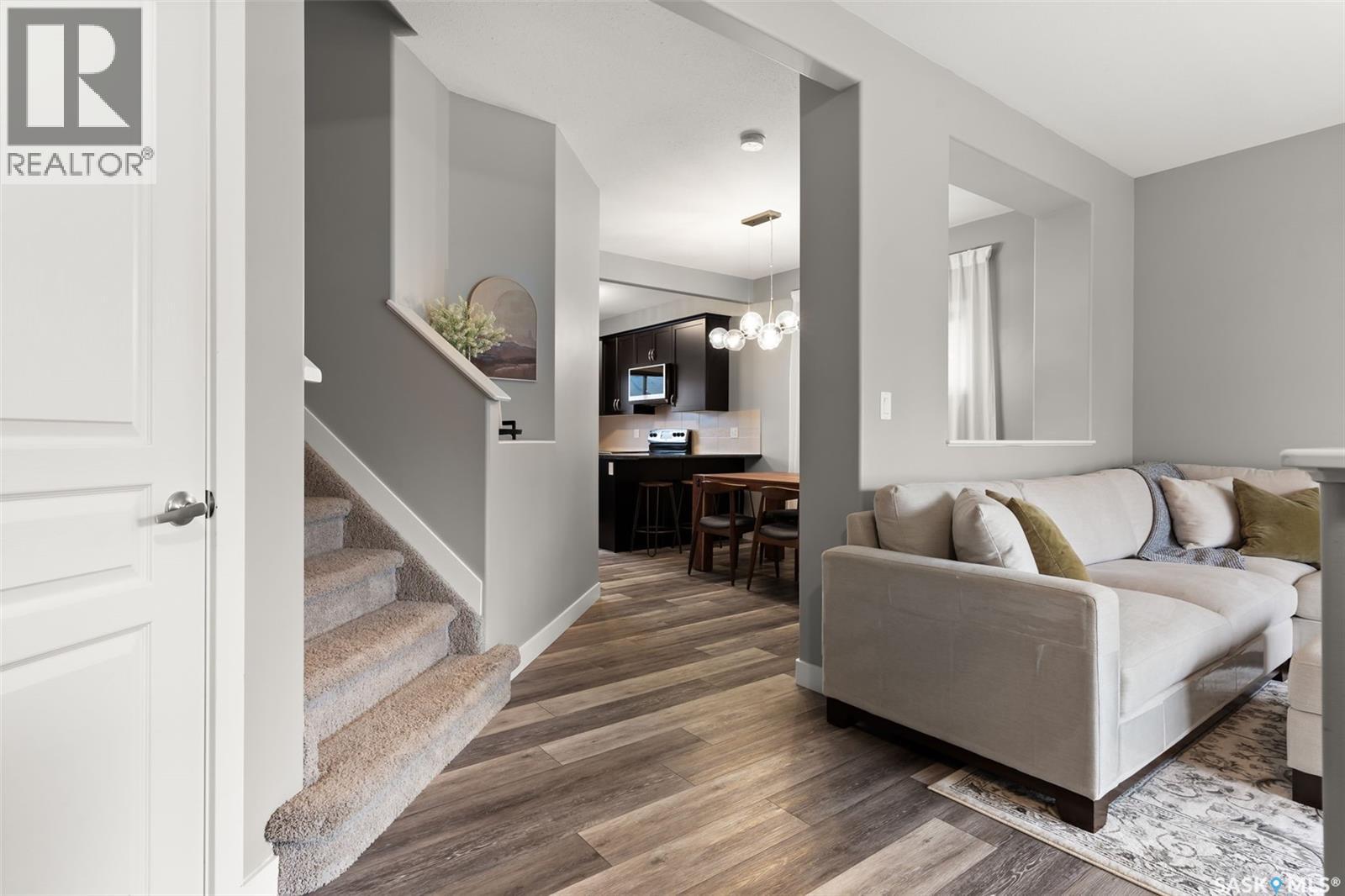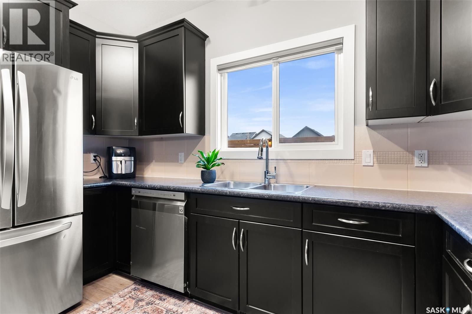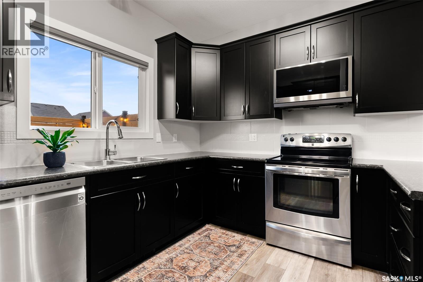 This beautifully maintained two-storey home in the vibrant community of Greens on Gardiner offers 1,402 square feet of thoughtfully designed living space. Built in 2011 this home has been lovingly cared for by the owners, the property features a spacious open-concept main floor with soaring 9-foot ceilings, modern paint, and new vinyl plank flooring. The front living room flows seamlessly into a formal dining area and a contemporary kitchen outfitted with espresso cabinetry, stainless steel appliances, a built-in dishwasher, microwave hood fan, and a striking tile backsplash with glass inserts. A convenient powder room and a rear entrance with a large closet complete the main level. Upstairs, the home boasts a generous primary bedroom with dual closets and a full 4 pce ensuite, along with two additional bedrooms and a four-piece bathroom. The fully finished basement includes a large rec room, a fourth bedroom, plus a three-piece bathroom, utility room, and ample storage. Outside, enjoy a beautifully landscaped backyard with a 20x13 composite deck, wood privacy screens, a shed, and a lush lawn. The 22x22 double detached garage is partially insulated and includes a sub panel, while central air conditioning ensures year-round comfort. Located close to east-end shopping, restaurants, and the new elementary school, this home is a perfect blend of style, function, and location. Please call your realtor for more information or personal tour. As per the Seller’s direction, all offers will be presented on 10/27/2025 6:00PM. (id:51699)