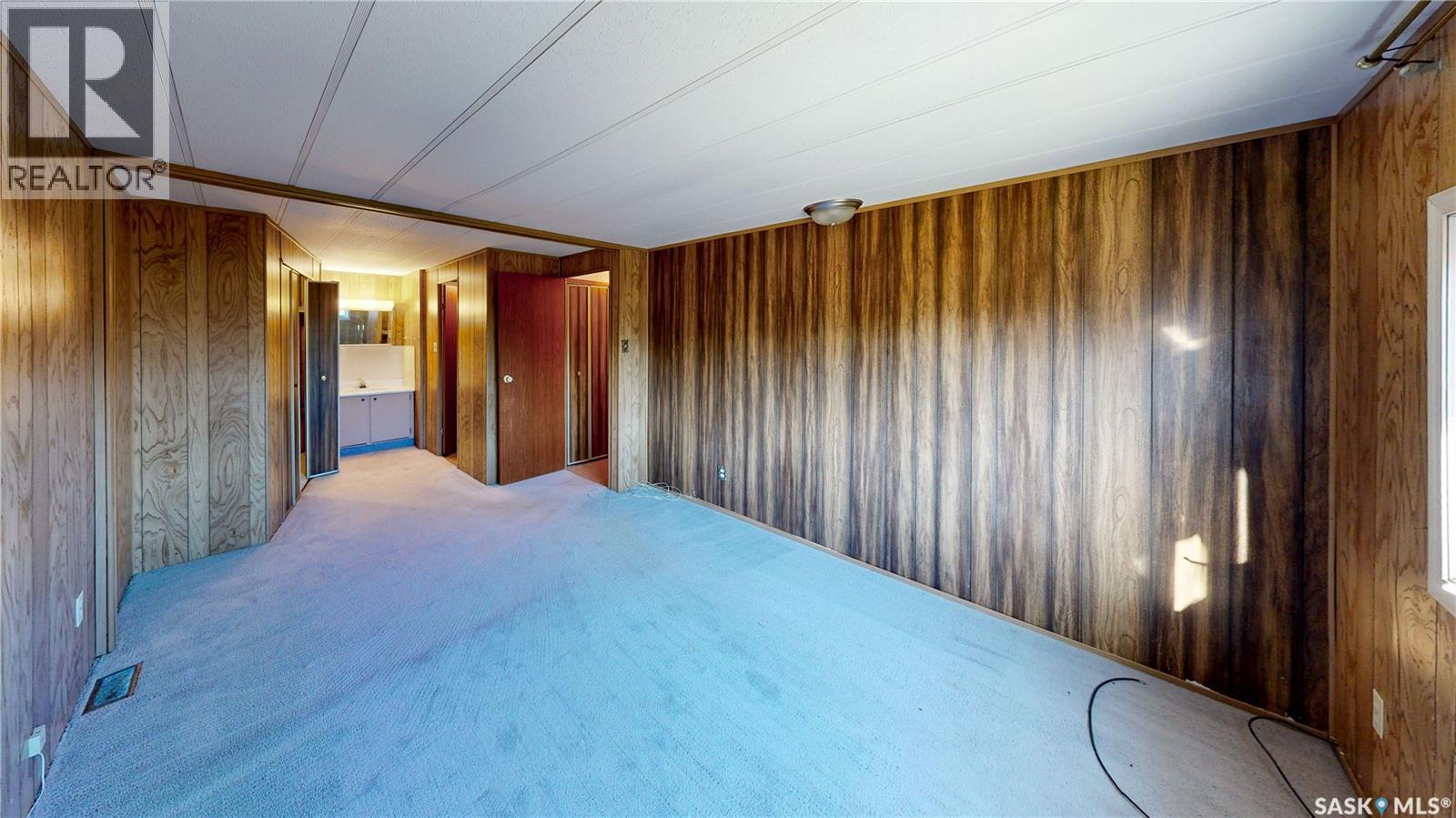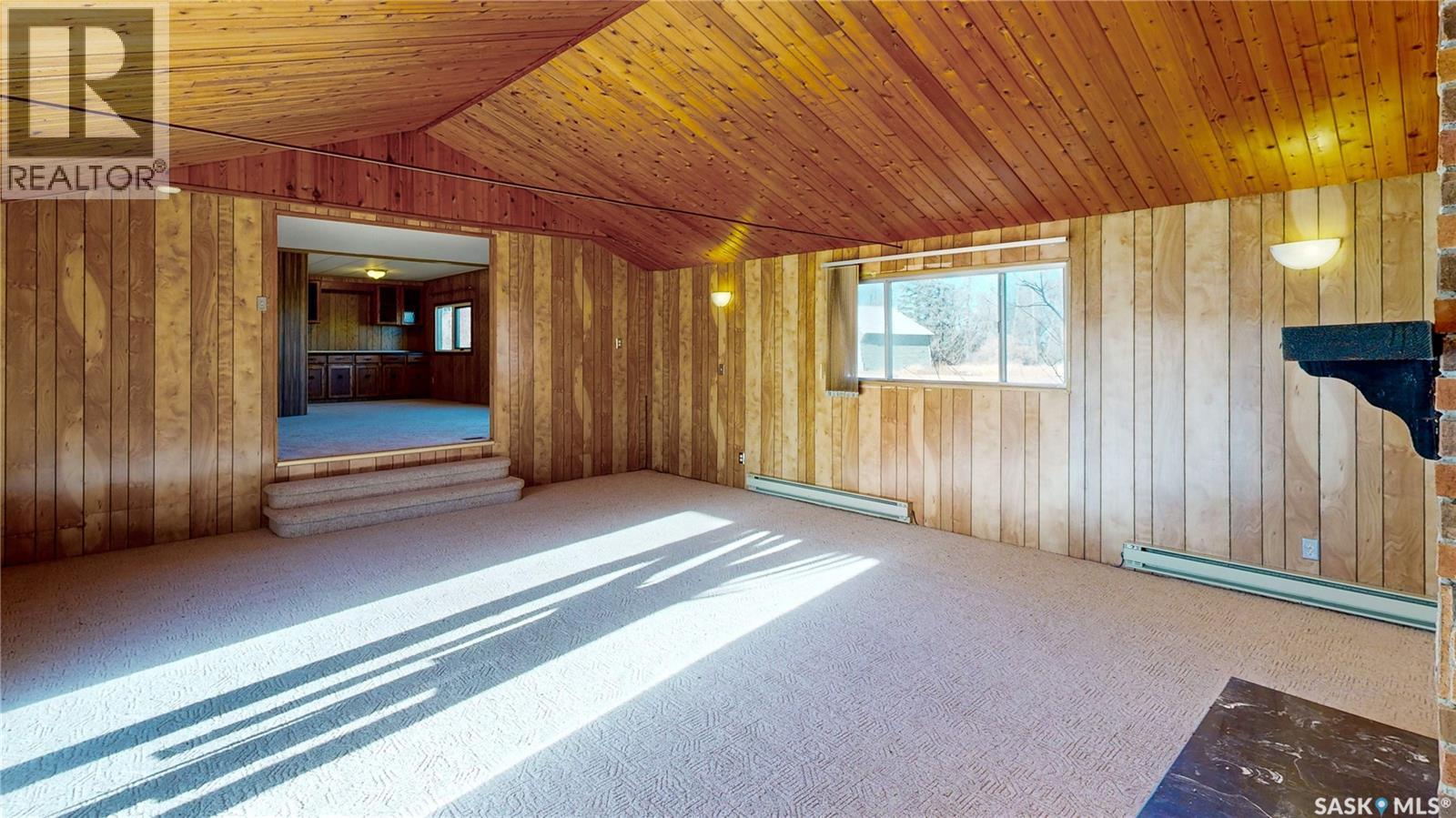 Welcome to the Lakness Acreage nestled in the picturesque Last Mountain Valley. This 1977 built double wide mobile home has both a porch and family room addition bringing its total size to 2,160 square feet. The home has 3 bedrooms, 2 bathrooms and sits on a massive 13.97 sprawling acres of land close to the town of Govan Saskatchewan. The property is well-equipped for farming, storage, and working featuring a 26 x 36 barn, a shed, a 28 x 36 heated workshop, a double attached 24 x 26 garage and a single 14 x 26 garage! You enter the home into the huge mud room with two closets for your outdoor wear, access to the garage and handy storage cabinets. This will also be your future laundry room! Down the staircase is the partial, unfinished basement that houses the owned furnace and gas water heater. The kitchen has ample room for a smaller table and chairs, an island with bar eating and the fridge, stove and dishwasher are all included. The dining room has a built-in dry bar and has space for a table that will seat the whole family! Perfect for hosting large gatherings! The family room has a large bay window overlooking the yard that fills the space with natural light. A step down is the gorgeous additional living room with high ceilings, a wood-burning brick fireplace, and sliding glass doors that lead into the yard. Next are two bedrooms and the main 4 piece bathroom. Finishing off the home is the primary suite with a walk in closet, vanity and 4 piece en suite bathroom! This home also features central air conditioning and a 100 amp electrical panel, an updated roof as well as well water and a septic pump out. (id:51699)